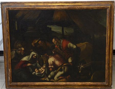 Ignoto, da Jacopo Bassano "Adorazione dei pastori" olio su tela (cm 69x88). Ins
