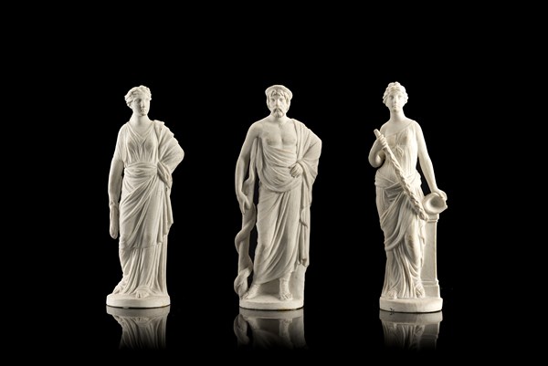 Manifattura di Vienna, fine secolo XVIII - inizio secolo XIX. Tre figure classiche in biscuit (h. max cm 10) (difetti)