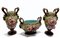 Manifattura fine secolo XIX. Trittico in ceramica decorato in rilievo a fiori e foglie, anse ad animali marini (h. cm 38) (difetti)