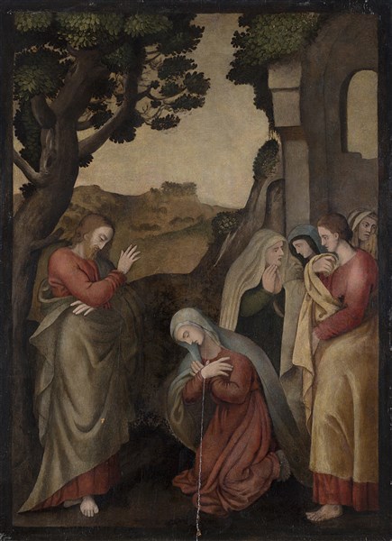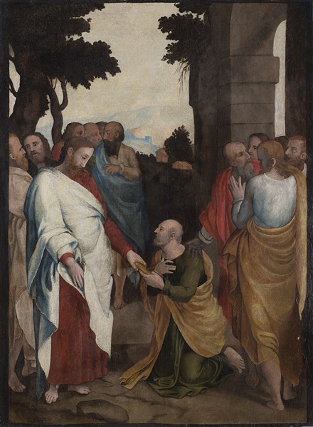Scuola italiana del secolo XVI Cristo consegna le chiavi a San Pietro Olio su
