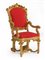 Poltrona da parata in legno dorato e riccamente intagliato a volute vegetali, r
