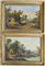 Villaggi lungo un torrente con scene di vita quotidiana' Coppia di olii su tela (cm 48x72). Reca firma in basso a sinistra, in cornice in legno dorato (difetti e mancanze)