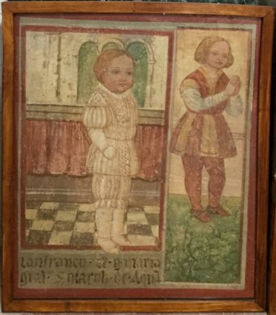 Antico strappo d'affresco raffigurante fanciulli (cm 54x65) in cornice (difetti