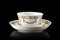 Manifattura del secolo XVIII. Tazza con piattino in porcellana decorata con fes