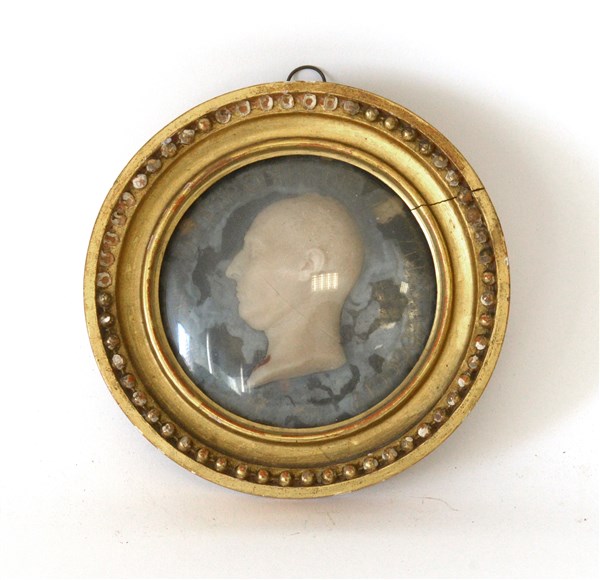 "Ritratto di Giovanni Battista Milesi" profilo in cera, firmato in basso,in cornice coeva (d cm 14) (difetti e mancanze)
