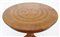 Tavolo tondo con sostegno tornito su tre gambe mosse decorato con filettature e