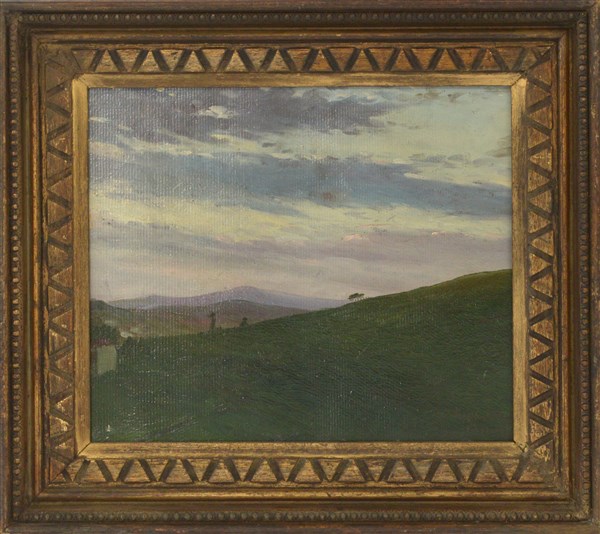 Lazzaro Pasini "Paesaggio collinare "26 luglio 1913 olio su cartoncino (cm 26x31