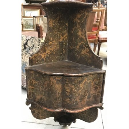 Angoliera pensile di forma sagomata rivestita interamente in carta marmorizzata. Fronte a due sportelli sec. XVIII (difetti)