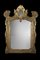 Caminiera in legno intagliato e dorato con cimasa a specchio scolpita a mazzi fioriti e testa leonina che sorregge un festone. Montanti decorati a volti fantastici e mazzi fioriti. Secolo XIX (cm 200x125) (difetti)
