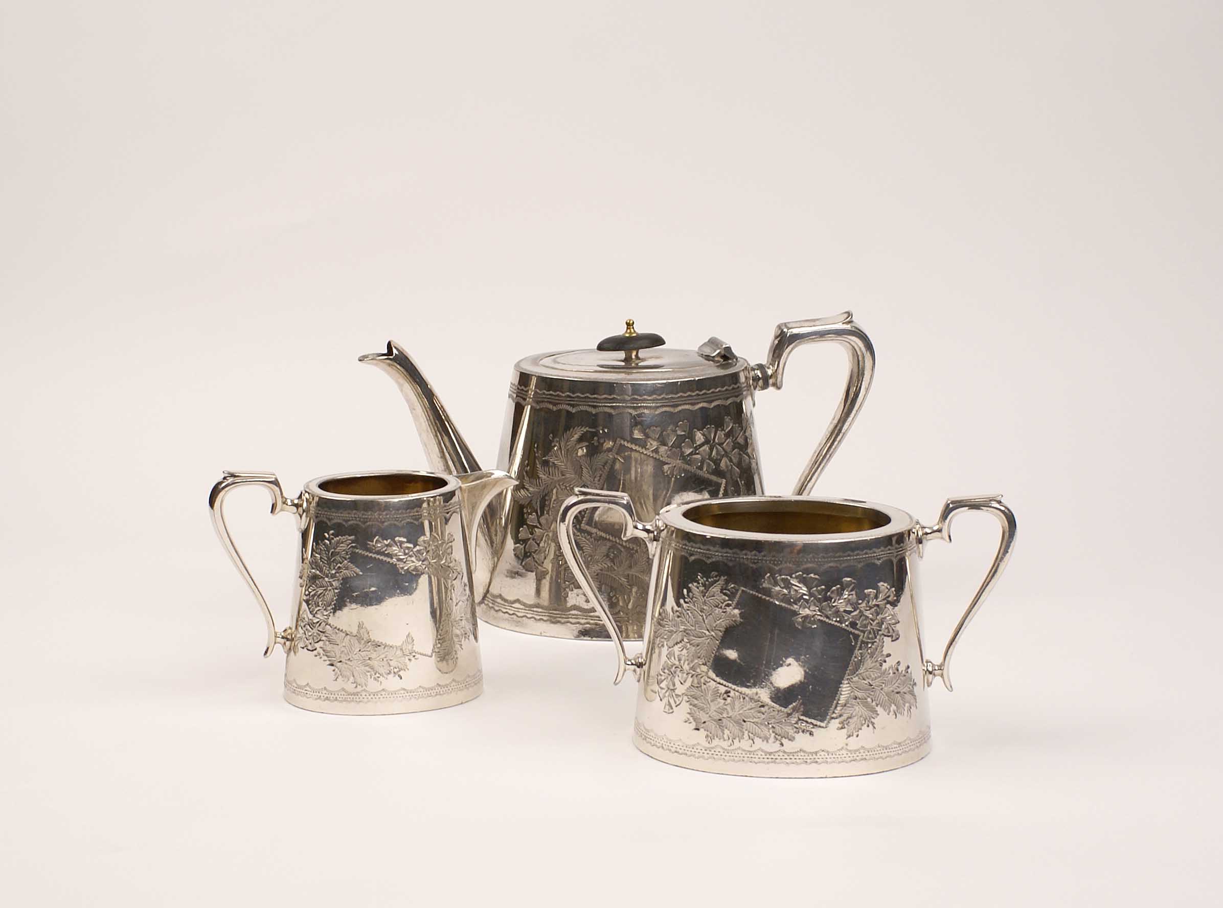 SERVIZIO DA THE IN SHEFFIELD Inghilterra 1860 circa Composto da una teiera, una lattiera e una zuccheriera, (lievi difetti)