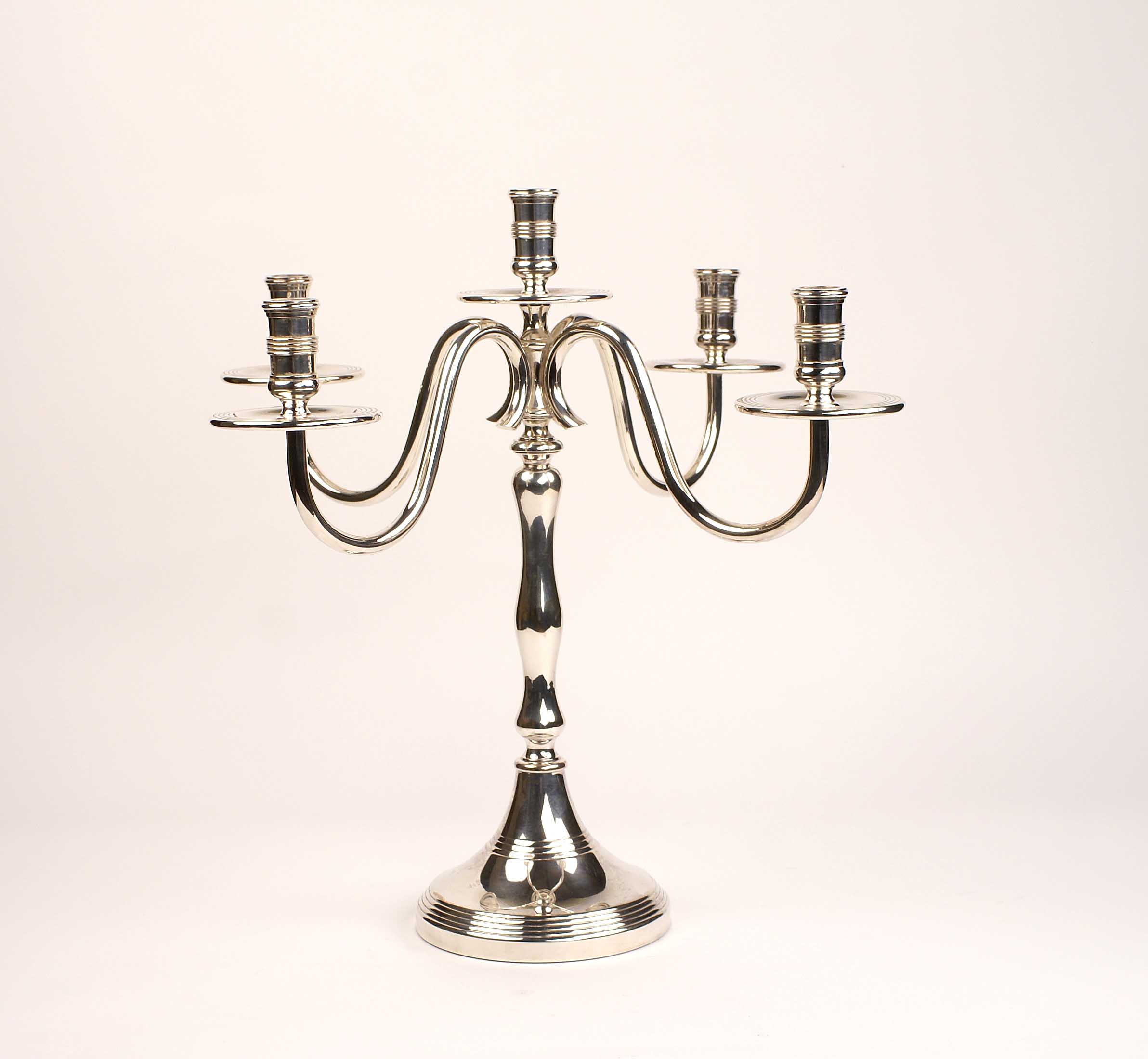 CANDELABRO IN METALLO BROGGI vecchia manifattura A cinque luci poggiante su base circolare H. 41 cm.