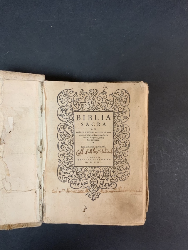 BIBBIA SACRA. Lione, Tornaesium, 1554. 8vo. Cartonato antico, molte figure in l