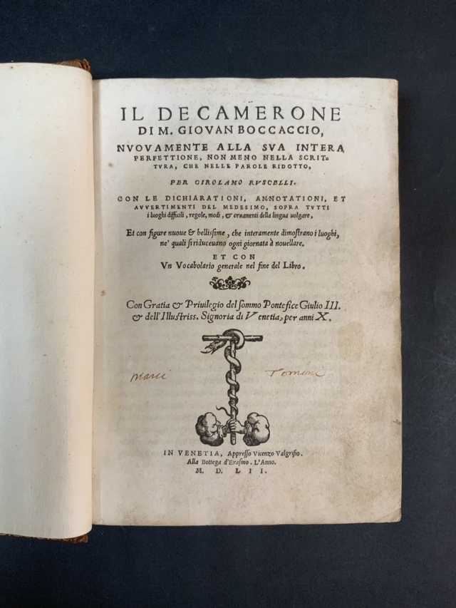 BOCCACCIO. Il Decamerone. Venezia: 1552. 4to. Rilegatura dei primi dell'ottocen