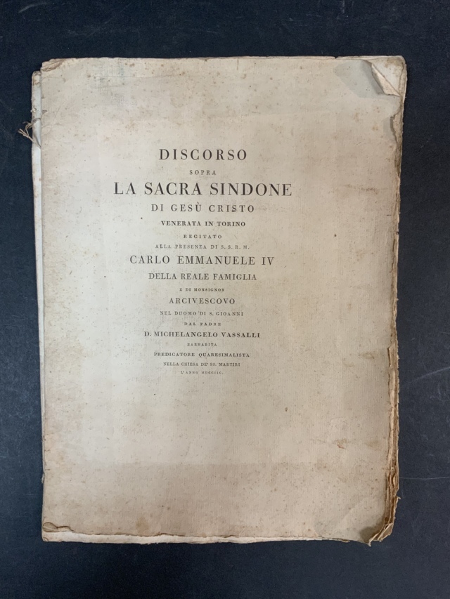 [BODONI] Discorso sopra La Sacra Sindone di Gesù Cristo. Parma: Bodoni, 1792. Folio (alcune bruniture, fioriture e altri difetti). Non collazionato e difetti da esaminare.