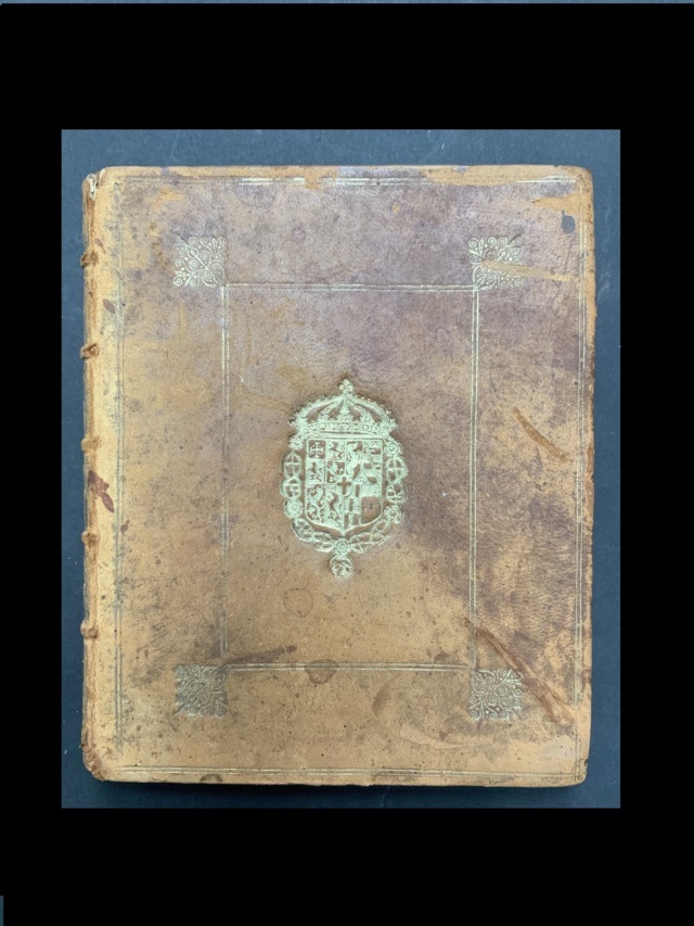 [LEGATURA] Volume con legatura alle armi entro cornice impressa in oro (qualche