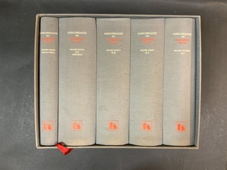 [MANZONI] DE RIENZO-DEL BOCA-ORLANDO. Concordanze dei Promessi Sposi. Milano, Fondazione Mondadori, 1985. 5 voll. in-8° grande; legatura editoriale in tutta tela in custodia.