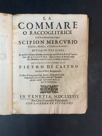 MERCURIO SCIPIONE. La Commare o raccoglitrice. Venezia: Valvasense, 1686. 4to,