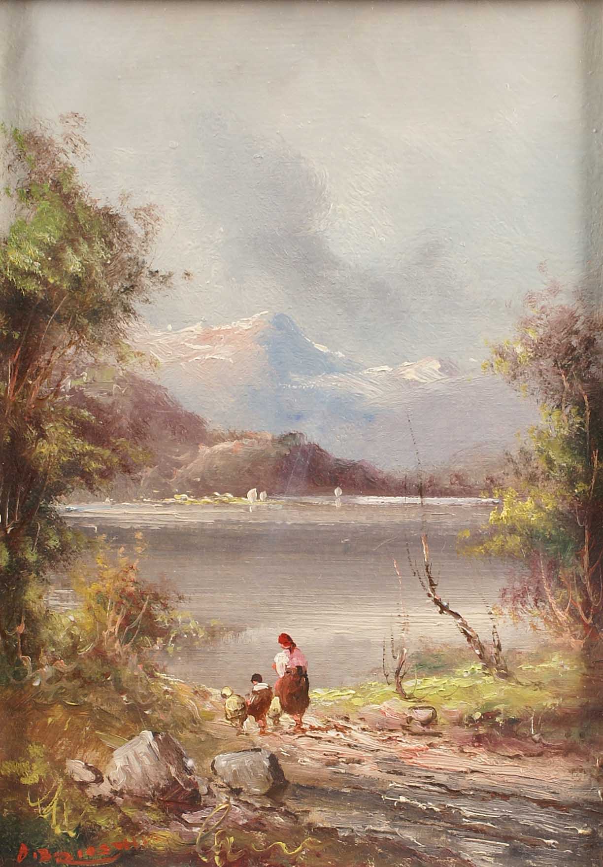 ATHOS BRIOSCHI Italia 1922-2000 "Paesaggio lacustre con figure", olio su...