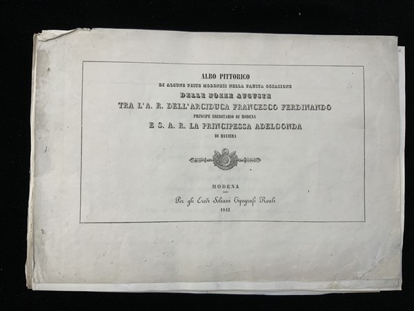 [MODENA] - Albo pittorico di alcune feste modenesi nella fausta occasione delle nozze auguste tra l'A. R. dell'Arciduca Francesco Ferdinando Principe ereditario di Modena e S. A. R. la Principessa Adelgonda di Baviera.
