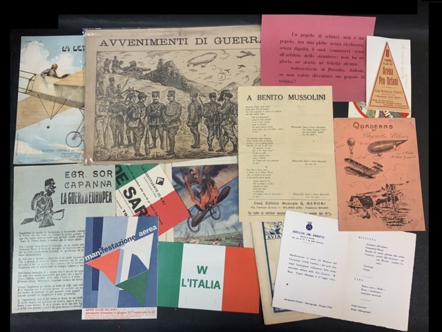 [PRIMA GUERRA MONDIALE - AVIAZIONE]. Lotto con materiale e documenti dedicati all'aviazioni e relativi alla Prima Guerra Mondiale. Non collazionato e difetti da esaminare.