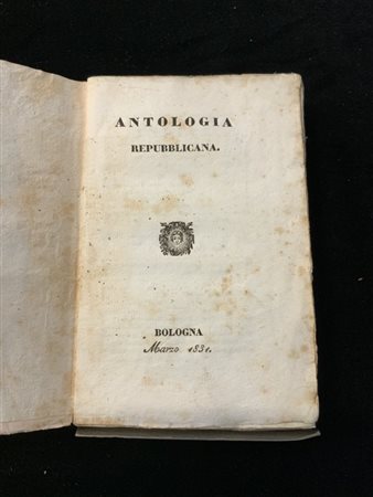 [RISORGIMENTO] Antologia repubblicana. Bologna, [s.e] 1831. 12mo, brossura stampata coeva. Interessante raccolta di canti e poesie di vari autori dedicati alll'Unità Italiana e alle rivoluzioni popolari. Non collazionato e difetti da esaminare.
