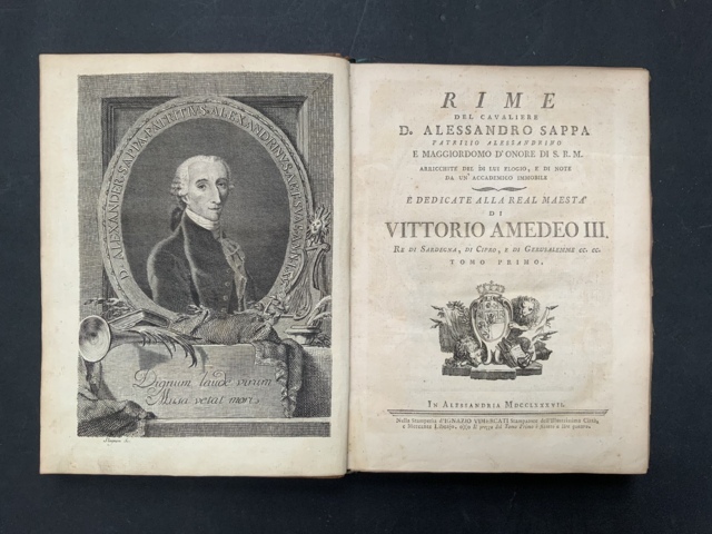 SAPPA de Milanesi Alessandro. Rime. Alessandria: Vimercati, 1787. 4to, ritratto