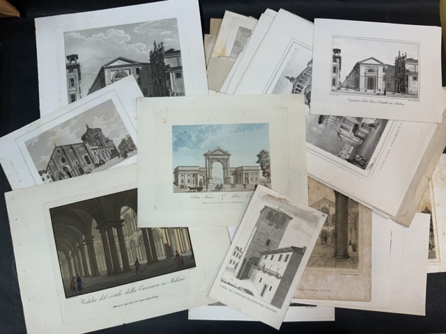 [MILANO] Raccolta di numerose stampe con vedute dei maggiori monumenti milanesi
