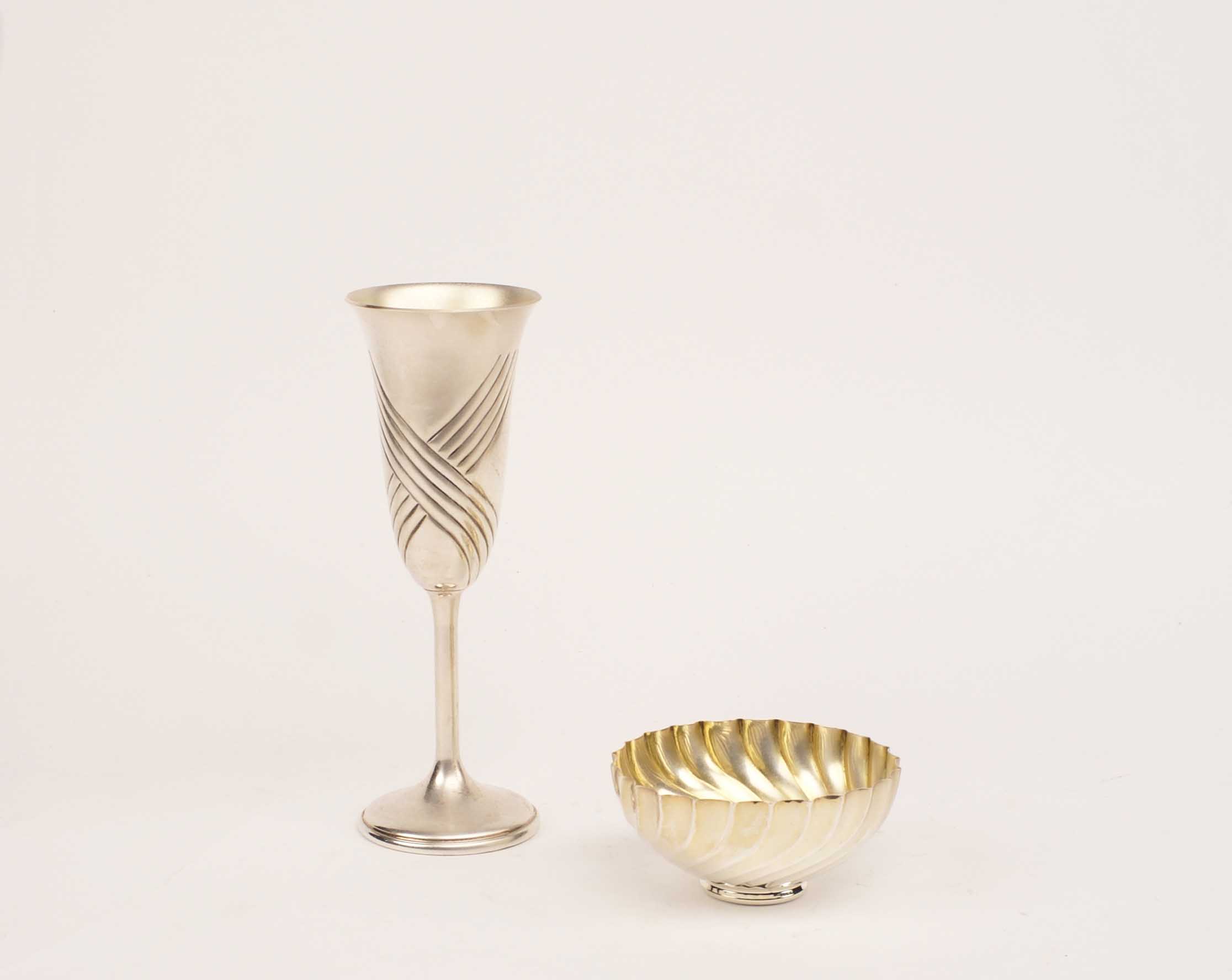Lotto 734 | LOTTO DI DUE OGGETTI IN ARGENTO manifattura italiana Composto da un flute e...