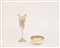 LOTTO DI DUE OGGETTI IN ARGENTO manifattura italiana Composto da un flute e un cestino, misure diverse Peso 245 gr.