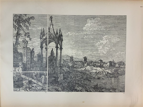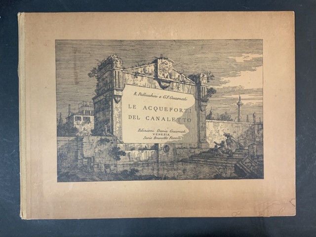 CANALETTO. Le acqueforti - Venezia, 1944. In-folio grande oblungo; Copertina editoriale in tutto cartone, esemplare numerato con studio e presentazioni delle famose acqueforti qui riprodotte.