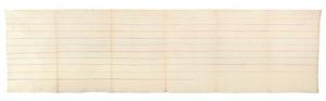 Giorgio Griffa Torino 1936 Linee orizzontali, 1973 Acrilico su tela, cm. 75,5x287 Firma e data al verso: Giorgio Griffa 1973. Esposizioni: Pensando pittura, Padova, Galleria la Rina- scente e Anfiteatro Arte, 27 gennaio - 24 aprile 2010, cat. p. 11, opera riprodotta in una foto dell'allestimento alla Galleria la Rinascente.