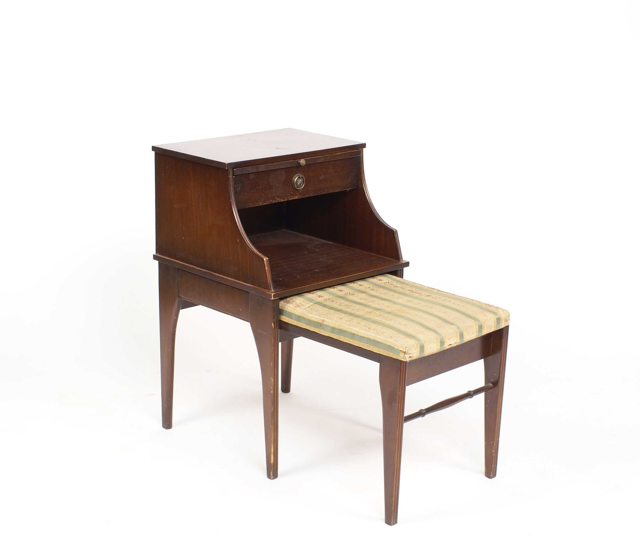 PARTICOLARE MOBILE DA TELEFONO Inghilterra vecchia manifattura In mogano e piuma di mogano con sgabello estraibile Dim. 68x44x42 cm.