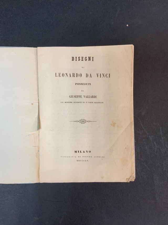 [FACSIMILE] VALLARDI, Giuseppe. Disegni di Leonardo da Vinci posseduti da Giuseppe Vallardi dal medesimo descritti ed in parte illustrati. Milano, Agnelli, 1855. In-8°; copertine editoriali. Non collazionato e difetti da esaminare.