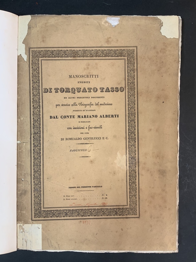 Lotto 1489 | TASSO. Manoscritti inediti di Torquato Tasso posseduti dal Conte Mariano Albert