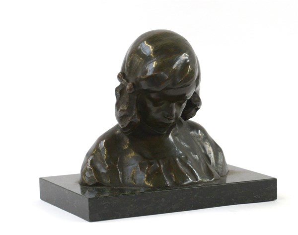 "Bimba" scultura in bronzo (h cm 19) poggiante su base in marmo. Firmata al retro