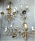Lotto di due coppie di appliques a tre luci in metallo, vetro e pendenti in cri