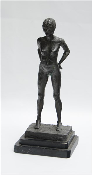 Firma indecifrata, "Nudo femminile", scultura in bronzo su base in legno (H tot
