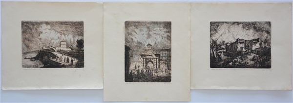 Federico Ferrari - Gruppo di tre acqueforti monocrome raffiguranti Porta Pila,