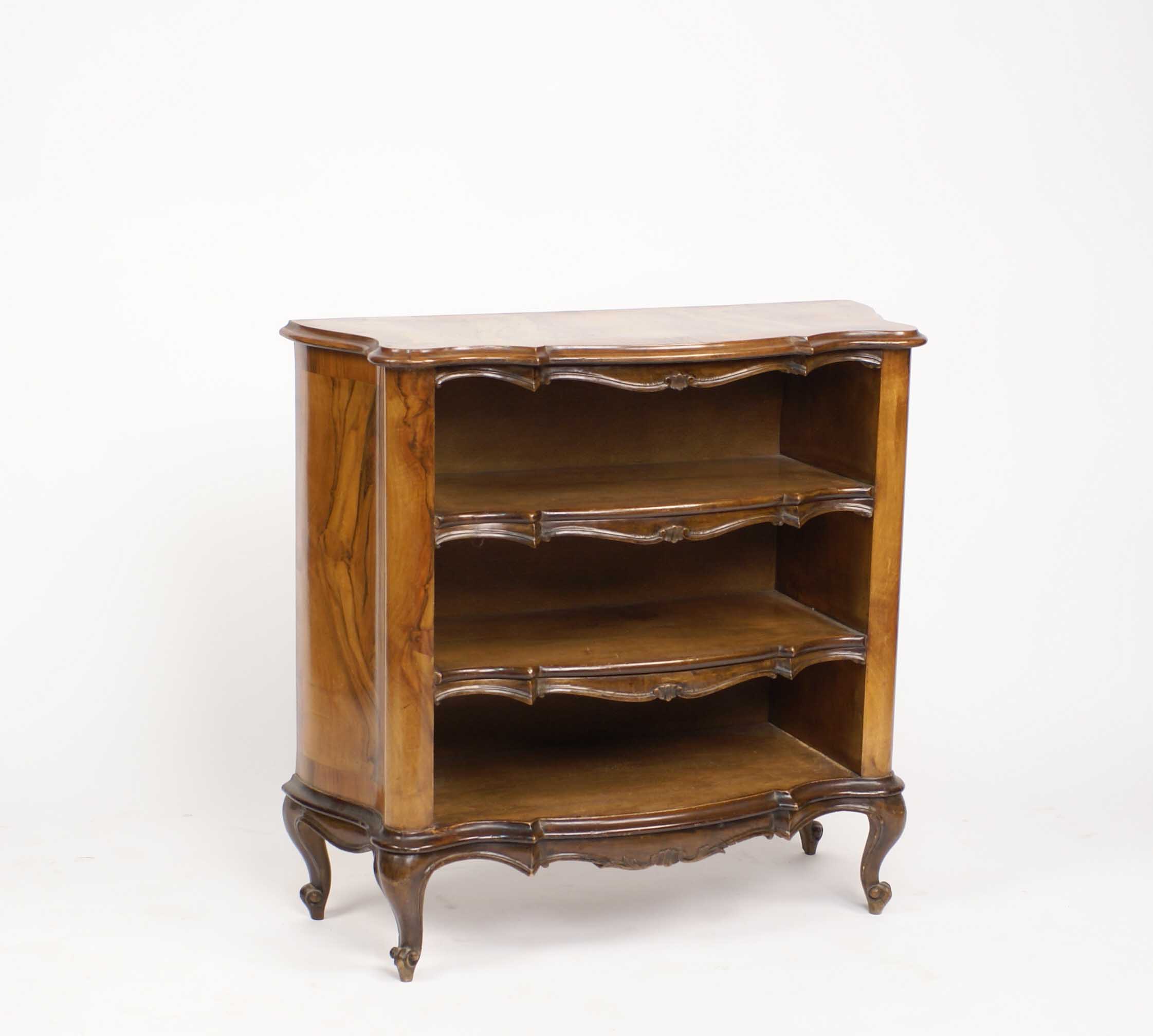 ETAGERE DI LINEA MOSSA IN NOCE Veneto vecchia manifattura Piano sagomato con tre ripiani sottostanti, piedini a riccio Dim. 79x82x33 cm.