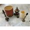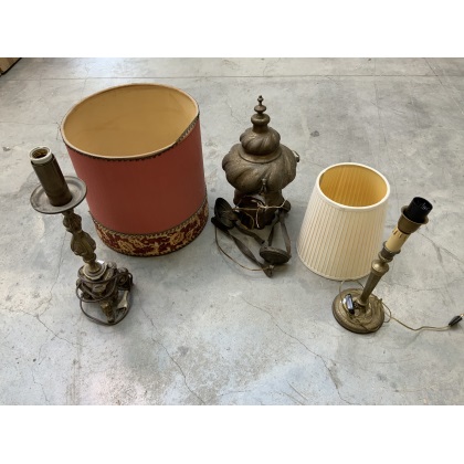 Lotto composto da una lanterna e due candelieri in metallo diversi (difetti)