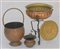 Lotto composto da un braciere, due contenitori e un piatto in rame e ferro batt
