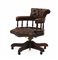 Poltroncina girevole decorata da colonnine tornite, gambe scanalate munite di rotelle. Rivstita in pelle capitonnè, Inghilterra secolo XX (difetti)
