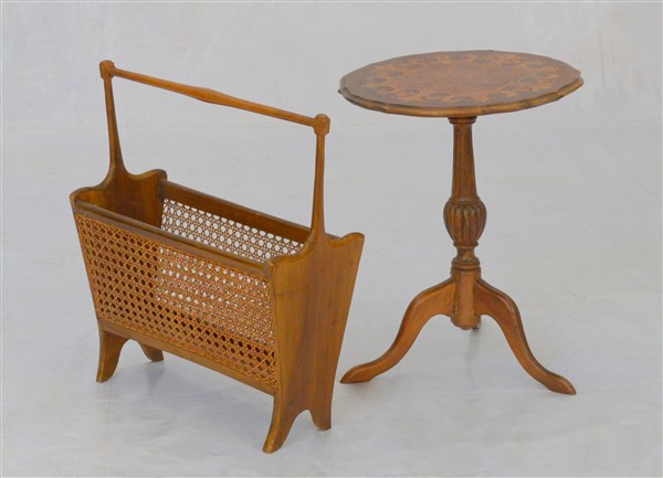 Lotto composto da un tavolino tripode ed un portariviste (difetti)