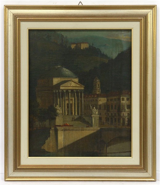 Ignoto fine secolo XIX "Torino, Chiesa Gran Madre" olio su compensato (cm 54,5x44) in cornice (difetti)