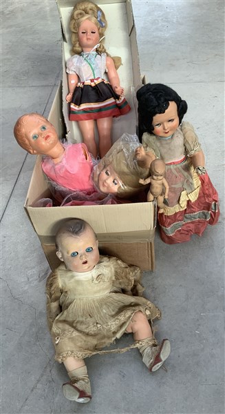 Lotto 1666 | Cartone contenente numerose bambole di epoche e dimensioni differenti (difetti