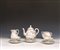LOTTO DI NOVE OGGETTI IN PORCELLANA manifatture diverse Composto da sei tazze da the con relativi piattini, una teiera, una zuccheriera e una lattiera (difetti e mancanze)
