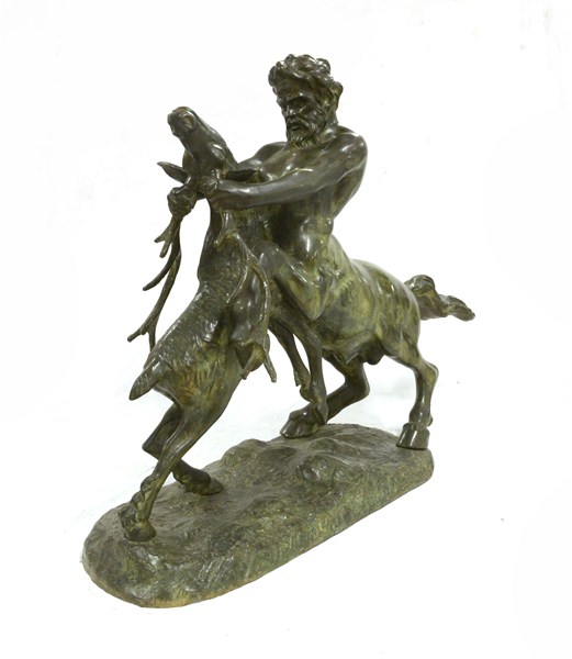 Ignoto "Centauro in lotta con il cervo" gruppo in bronzo a patina verde (h cm 135) (difetti)