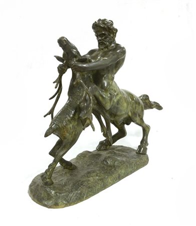 Ignoto "Centauro in lotta con il cervo" gruppo in bronzo a patina verde (h cm 1