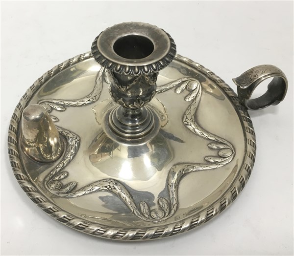 Bugia in argento con corpo decorato a festoni. Londra, 1876 (g 430) Provenienza