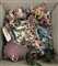 Cartone contenente numerose statuine da presepe, materiali differenti (difetti